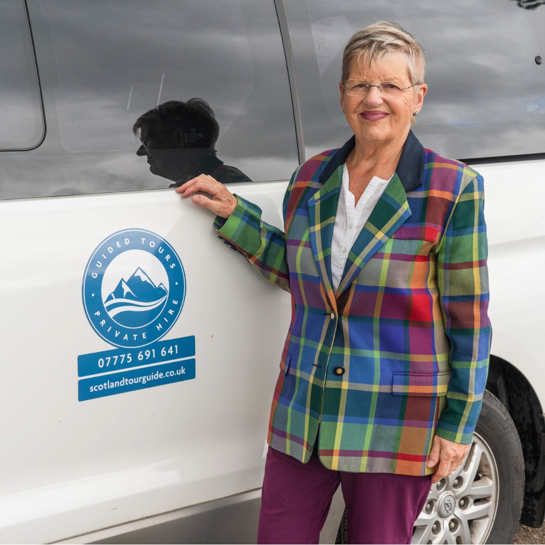 Kathy Cameron is a highly experienced Blue Badge tour guide and professional driver guide based in Inveraray, Argyll. With decades of experience in hospitality and guiding, Kathy offers knowledgeable, friendly, and completely bespoke tours throughout Scotland.